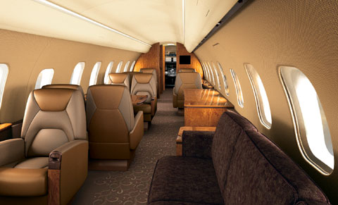 “環(huán)球5000”是加拿大龐巴迪公司研制的一架雙發(fā)渦扇遠(yuǎn)程商業(yè)運(yùn)輸機(jī)。氣動(dòng)布局采用發(fā)動(dòng)機(jī)尾吊、T型尾翼并裝有翼梢小翼。載客最多19人。航程超過(guò)8000km。