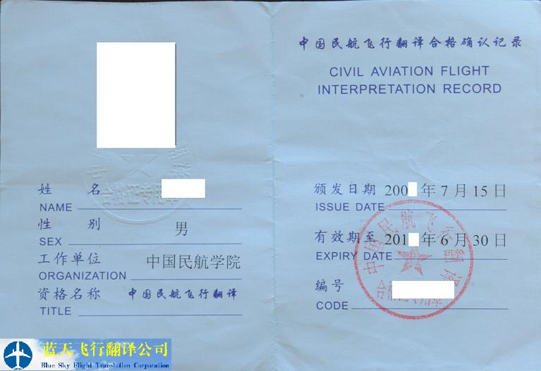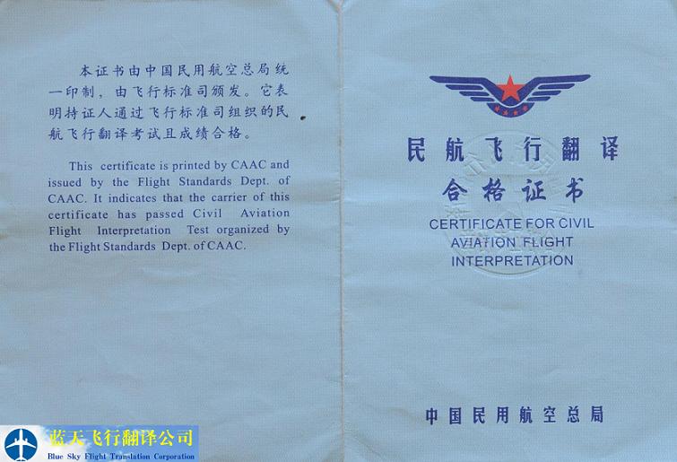 本文鏈接地址:民航飛行翻譯合格證書 Certificate for civil aviation flight interpretation