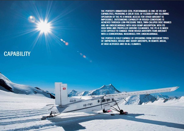 = PORTER-ABILITY THE PILATUS PC-6 PORTER HAS BECOME A LEGENDARY AIRCRAFT, KNOWN AROUND THE WORLD SIMPLY AS “THE PORTER”. ITS UNIQUE SHORT TAKE-OFF AND LANDING (STOL) CAPABILITIES, RELIABILITY AND VERSATILITY IN ALL WEATHER AND TERRAIN CONDITIONS HAVE ESTABLISHED THE PC-6’S REPUTATION AS A RUGGED UTILITY AIRCRAFT.