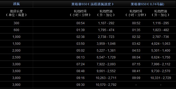 To view this page ensure that Adobe Flash Player version 9.0.124 or greater is installed. 輪擋時(shí)間及輪擋燃油 輪擋時(shí)間及輪擋燃油 4名乘客,2名駕駛員,每人以200磅(91公斤)計(jì),國際標(biāo)準(zhǔn)大氣,無風(fēng),符合NBAA IFR規(guī)定的備份燃油條件。(200海里備降距離)。起飛條件:海平面、國際標(biāo)準(zhǔn)大氣、最佳起飛重量 最大使用速度