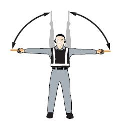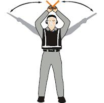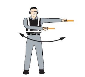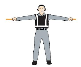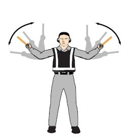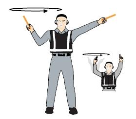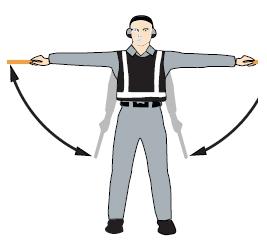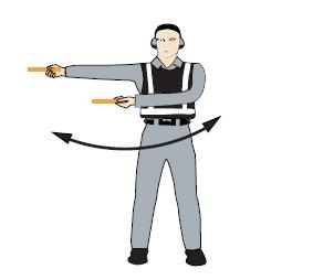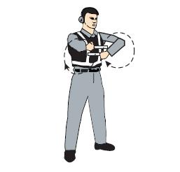 雙臂水平外伸,掌心朝下,向下招手,雙臂移動速度表示上升率大小 向下移動(下降高度) 一臂水平指向右側(cè), 另一臂反復(fù)向所指方向揮動,示意直升機(jī)應(yīng)向左移動(轉(zhuǎn)向)向左移動(轉(zhuǎn)向) 一臂水平指向左側(cè), 另一臂反復(fù)向所指方向揮動,示意直升機(jī)應(yīng)向右移動(轉(zhuǎn)向)向右移動(轉(zhuǎn)向)