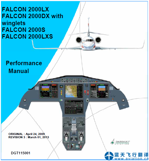 藍(lán)天飛行翻譯公司承接公務(wù)機(jī)公司達(dá)索2000LX性能手冊(cè)翻譯任務(wù) F2000LX Performance Manual Translation