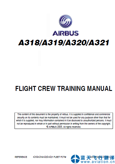 北京藍天飛行翻譯公司完成2015年12月1日版本空客A320機組訓(xùn)練手冊翻譯任務(wù) 01 DEC 15 A318/A319/A320/A321 FLIGHT CREW TRAINING MANUAL Translation