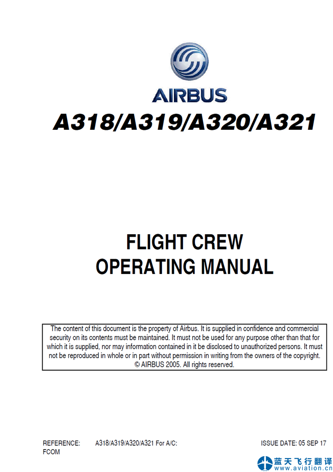 北京藍(lán)天飛行翻譯公司完成航空公司2017年9月5日版本空客A320機(jī)組操作手冊(cè)和快速檢查單翻譯任務(wù) A320 FLIGHT CREW OPERATING MANUAL and QUICK REFERENCE HANDBOOK Translation
