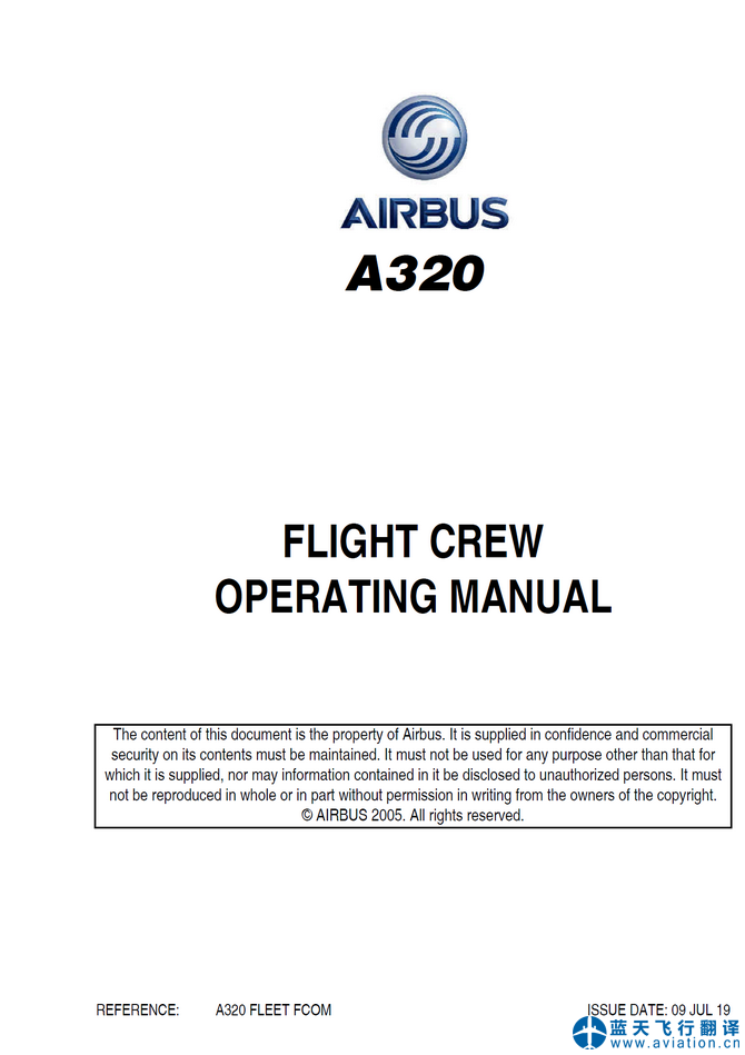 北京藍(lán)天飛行翻譯有限公司完成大型航空公司2019年7月9日版本空客A320NEO和A321NEO 飛行機(jī)組操作手冊翻譯任務(wù) A320NEO and A321NEO FLIGHT CREW OPERATING MANUAL Translation