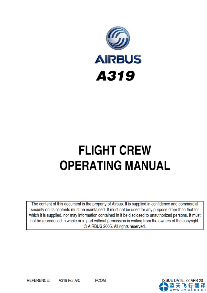 本文鏈接地址:完成2020年4月22日版本空客公務(wù)機(jī)ACJ319全套飛行手冊(cè)翻譯任務(wù)