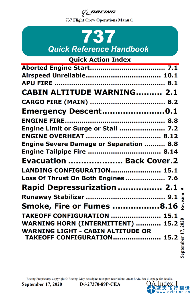 完成2020年9月17日版本波音737-700/-800 FCOM和QRH翻譯任務(wù)