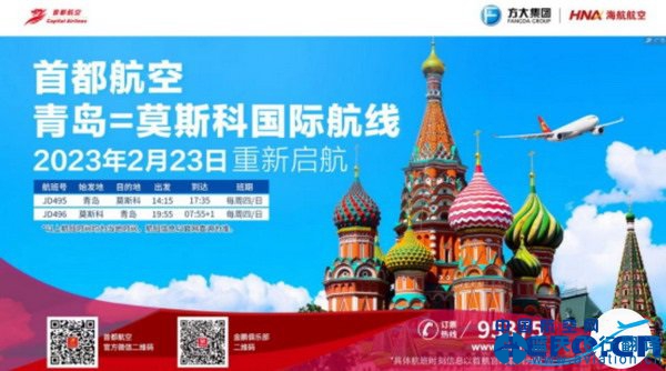 吹響復蘇號角,海航航空旗下首都航空計劃恢復青島=莫斯科國際航線