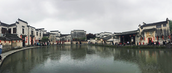 此行我們首站到達(dá)了歷史悠久的宏村,這里沉淀了徽派古老的文化底蘊(yùn)。來宏村之前導(dǎo)游說,在這里隨手拍都可以做壁紙,之前也聽過看過太多的宏村的圖片,我們對于這個小村莊心生向往已久。宏村被譽(yù)為“中國畫里的鄉(xiāng)村”,聯(lián)合國專家稱贊它為“舉世無雙的小城鎮(zhèn)水街景觀”。因為它背倚黃山余脈羊棧嶺、雷崗山,地勢較高,有時云蒸霞蔚,如濃墨重彩,有時似潑墨寫意,四周山色與粉墻青瓦倒映湖中,人、古建筑與大自然融為一體,好似一幅徐徐展開的山水畫卷。