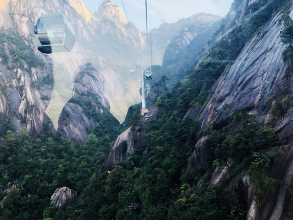 第二天,我們早早的吃過早飯后開始了登山之行,通過慈光閣乘坐了纜車,登高遠(yuǎn)眺黃山之景,感嘆大自然的神奇,真是巧奪天工,幾張全景仍無法盡述我們眼前的美景。