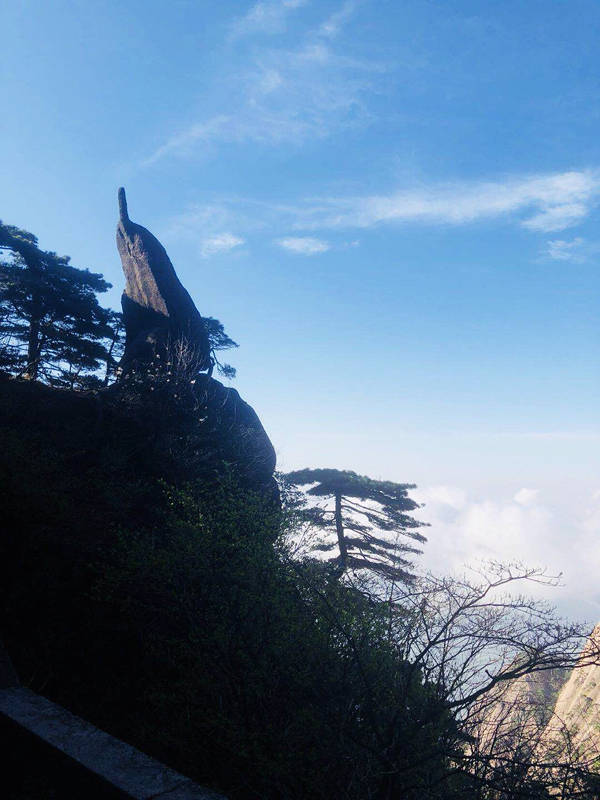 下了纜車我們就開始了階梯式的爬山,歷經(jīng)1個小時終于到達(dá)了迎客松,黃山的代表,這里有著像大猩猩的怪石、奇美的松樹。從高處眺望,一覽眾山小的感覺油然而生。