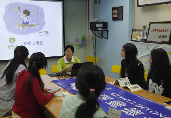 我們來(lái)到機(jī)構(gòu)會(huì)議室,熱情的李老師為我們介紹了自閉癥這種疾病 ,自閉癥這種病癥病因不清,無(wú)法篩查無(wú)法預(yù)防,到1-2歲時(shí)才有明顯癥狀,不過(guò)68:1的發(fā)病率還是讓我們吃了一驚,這表示“星星們”就在離我們不遠(yuǎn)的地方。大家認(rèn)真聽(tīng)取了自閉癥早期訓(xùn)練的好處,以及社會(huì)、家庭對(duì)自閉癥群體包容、引導(dǎo)、教育的責(zé)任,呼吁全社會(huì)都來(lái)關(guān)愛(ài)這個(gè)群體。