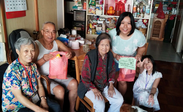 這些長者有些是獨(dú)居的,有些是行動(dòng)不便的,還有些則是親屬不常在身邊的。我們陪長者聊天,在聊天的過程中,了解他們的日常生活起居和飲食習(xí)慣等。希望通過聊天了解到是否有什么地方需要特別幫助的,再反映給長者鄰舍中心的義工以便他們跟進(jìn)。長者們知道我們要上去探訪他們,都非常高興,一早就站在門外等待我們的到來。