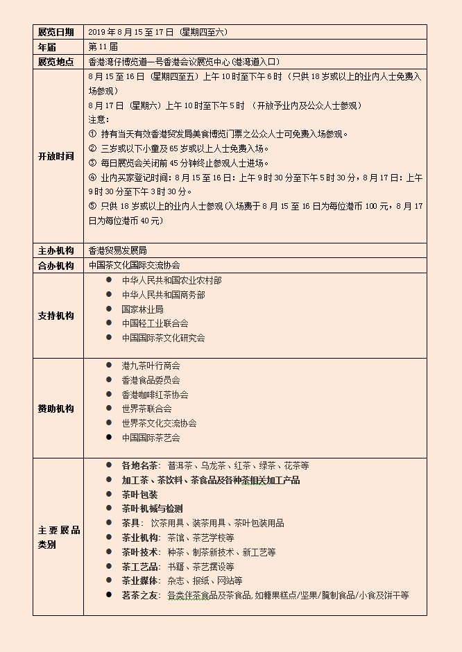 ? ? ? 香港貿(mào)發(fā)局香港國(guó)際茶展是亞洲區(qū)內(nèi)領(lǐng)先的茶葉及相關(guān)產(chǎn)品商貿(mào)平臺(tái)。2018年茶展匯聚超過(guò)250家來(lái)自10個(gè)國(guó)家及地區(qū)的參展商,并吸引逾16,000名業(yè)內(nèi)買家進(jìn)場(chǎng)參觀采購(gòu)。