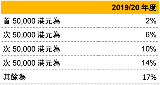 也就是說,收入總額在20萬港幣時,套用以上公式,算出應(yīng)繳稅款為1.6萬,而超出20萬的剩余部分則按17%征稅