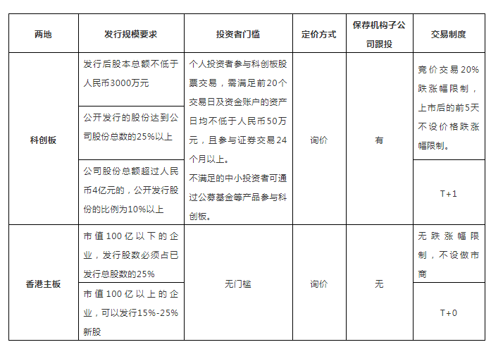 這些條件的放寬也使科創(chuàng)板進(jìn)一步與港股和納斯達(dá)克市場的機(jī)制靠攏,但是依舊存在一定的差異,我們拿港交所來進(jìn)行對比: