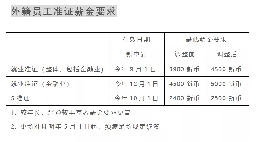 此外,新加坡政府還對(duì)金融業(yè)設(shè)立最低薪金門檻,2020年12月份開始,對(duì)外國準(zhǔn)證持有者的薪金調(diào)高至5000新幣。