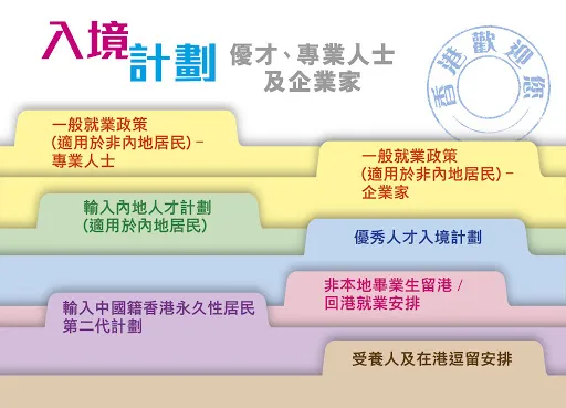對此,香港特區(qū)政府采用多渠道吸引全球優(yōu)秀人才,目前,香港主要有三大人才輸入計劃,分別為“一般就業(yè)政策”、“優(yōu)秀人才入境計劃(優(yōu)才計劃)”及“輸入內(nèi)地人才計劃(專才計劃)”。