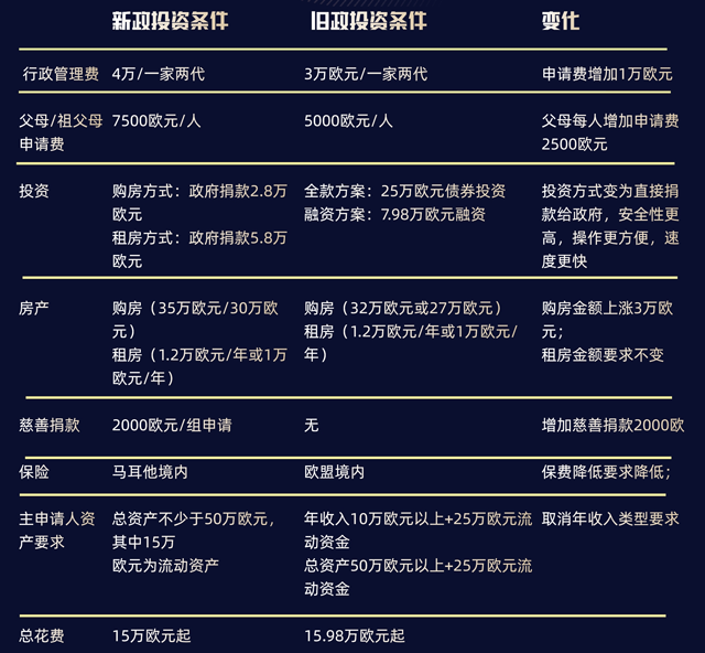 這次新政最核心的變化是投資模式,采取了“政府捐款+慈善捐款+房產(chǎn)投資”的方式,不再要求購買國債,可以說馬耳他項目正式邁入捐款時代。