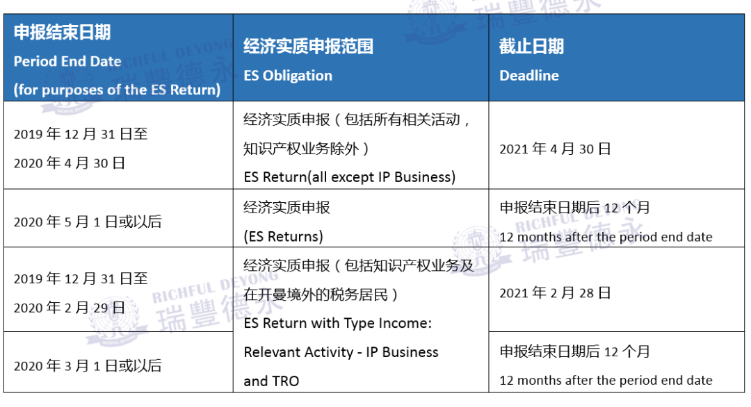 根據(jù)DITC于2021年1月11日公布的最新行業(yè)通知,關(guān)于提交經(jīng)濟(jì)實(shí)質(zhì)申報(bào)表(ES Return)的截止日期總結(jié)如下: