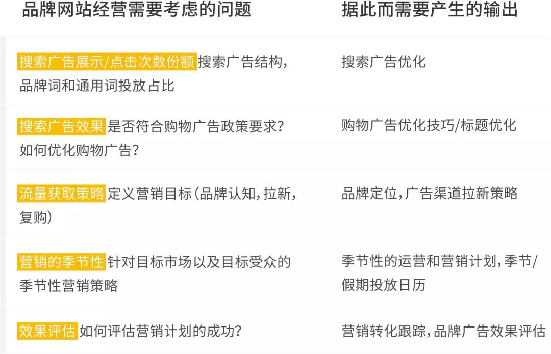跨境電商可能聽說過幾十種營銷策略,比如網紅營銷、體驗式營銷、社交媒體營銷、視頻頻道建立等……但真要下手做時依然迷惑。剛起步的網站需要化繁為簡,營銷漏斗從大的開始篩,可以考慮先從谷歌廣告開始。在選擇谷歌廣告的產品時,如果不知道選哪幾種,可以先選搜索廣告和購物廣告;如果不知道投的時候重點在哪里,那請對照下方的表格,考慮清楚下面幾個問題,理清頭緒。