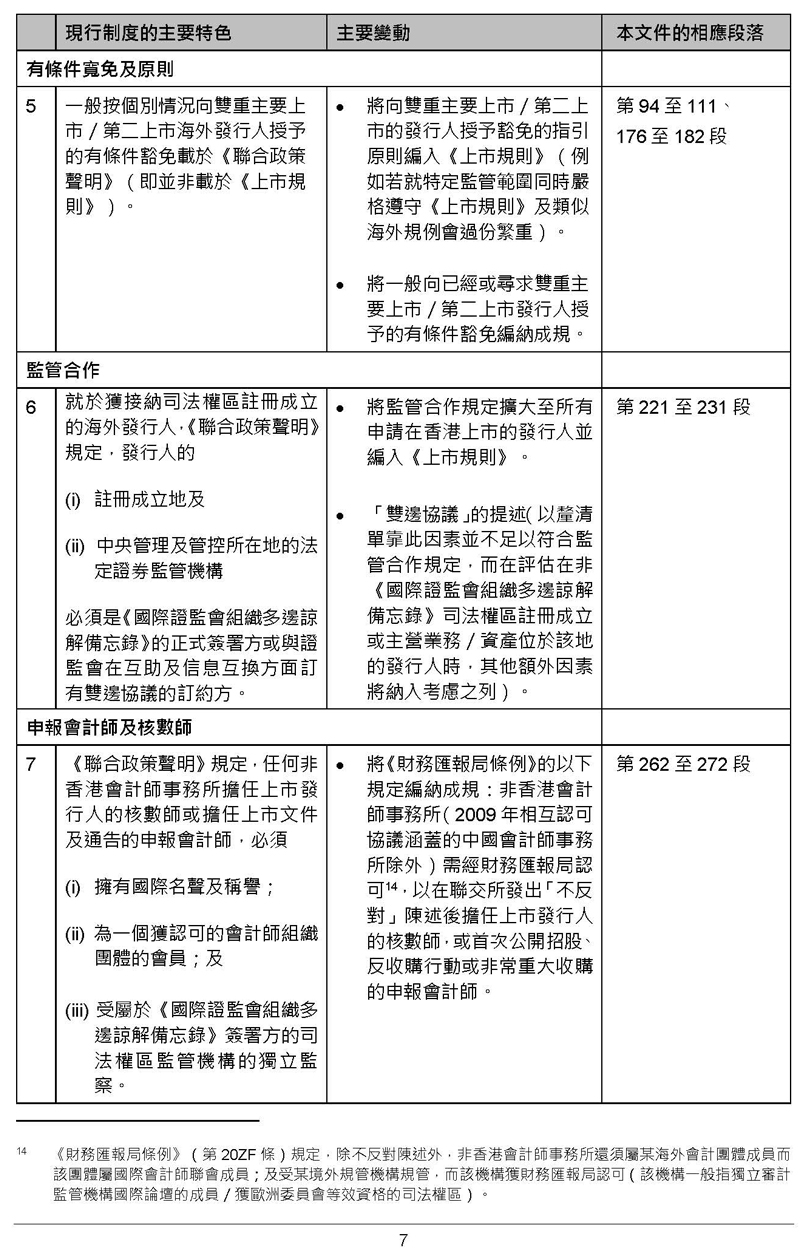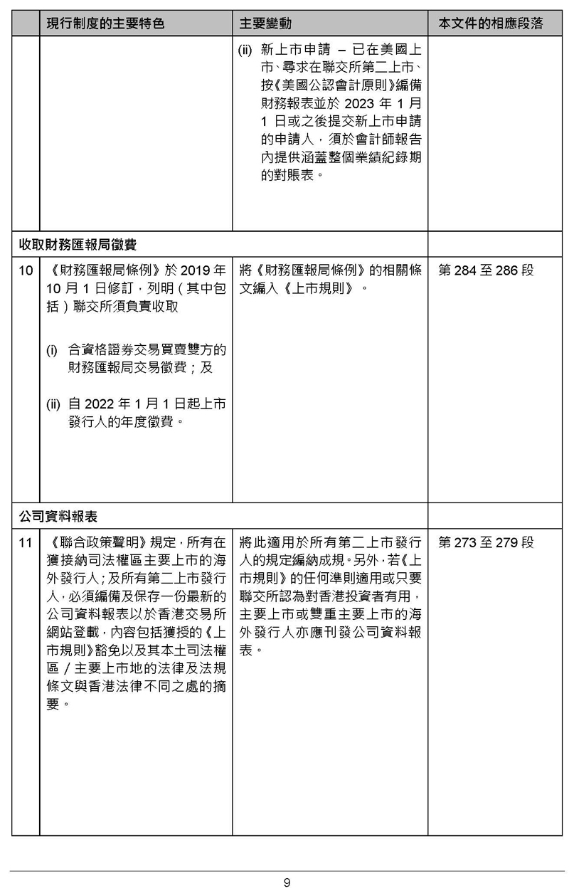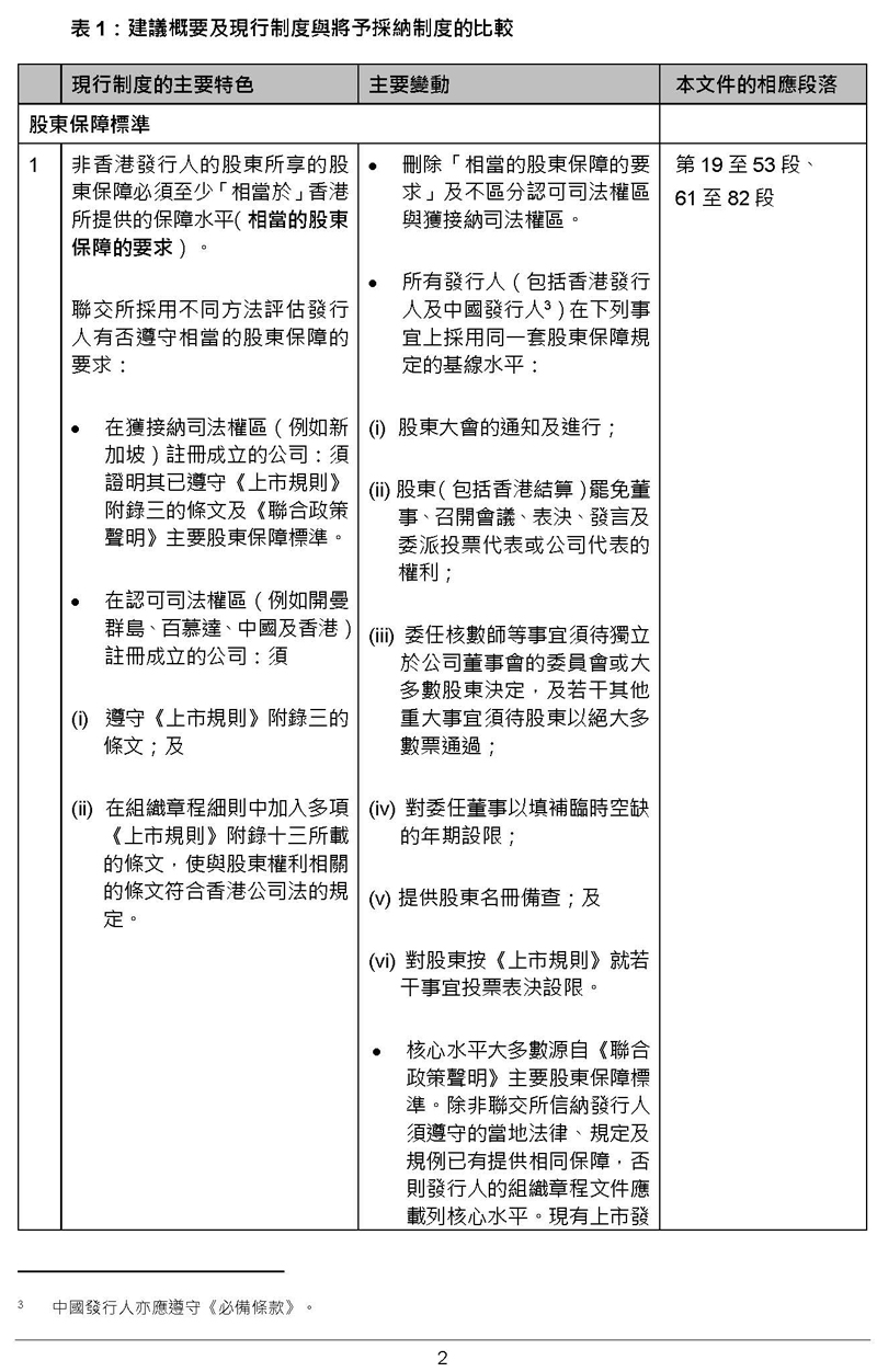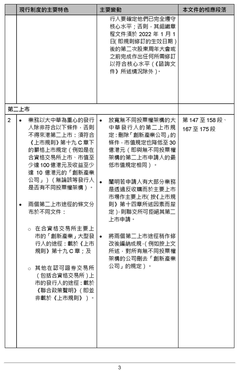 沒有不同投票權(quán)架構(gòu)的大中華發(fā)行人可作第二上市,而毋須證明其是“創(chuàng)新產(chǎn)業(yè)公司”,及上市時最低市值將改為30億元港幣(若能證明其在合資格交易所有至少五個完整會計年度的良好合規(guī)紀錄)或100億元港幣(若能證明其在合資格交易所有至少兩個完整會計年度的良好合規(guī)紀錄)。