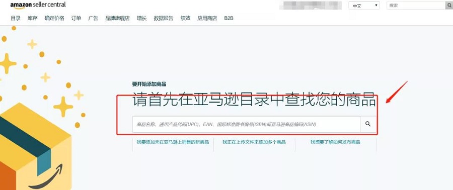 在后臺(tái)的添加新商品界面的搜索框中輸入ASIN。