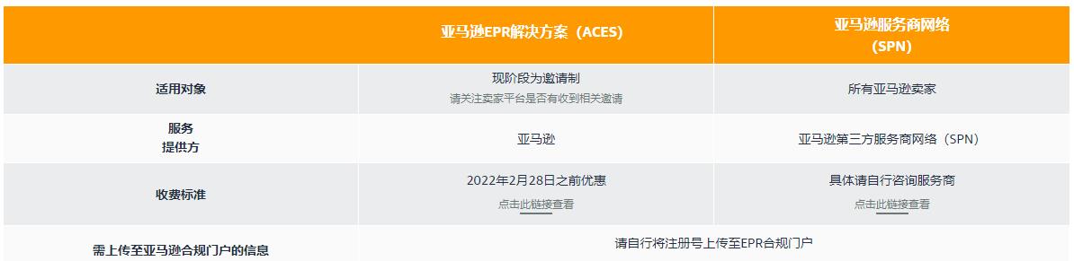 生產者責任延伸(EPR)是一項環(huán)境政策,要求生產者對其在市場上所推出商品的整個生命周期負責,即從商品設計開始到商品生命周期結束(包括廢棄物收集和處理)。自 2022 年起,如果您要在法國/德國銷售商品,亞馬遜將有義務確認您在銷售商品所在的國家/地區(qū)是否符合生產者責任延伸(EPR)的要求。因此,亞馬遜將會收集并驗證您的 EPR 注冊號。