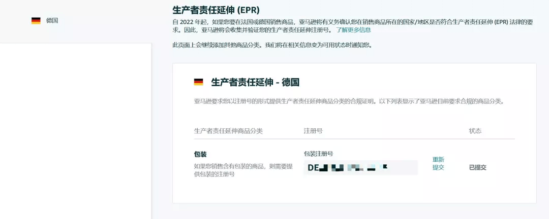 3. 相同的EPR商品在不同站點上需要分開注冊:對于在亞馬遜德國站、法國站上銷售的EPR商品分類,每個國家/地區(qū)都有不同的注冊要求、注冊流程以及授權機構,因此德國和法國需要分開注冊,并不通用。
