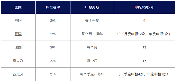 1.英德法意西增值稅(VAT)稅率、申報(bào)周期對(duì)照表