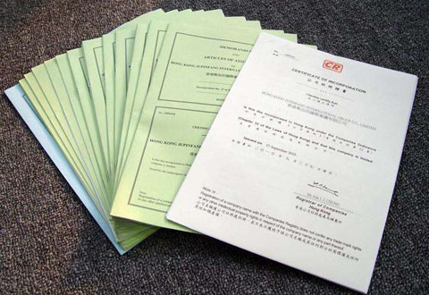 (1)公司全套資料正本:如注冊(cè)證書、商證、法團(tuán)成立表格、章程、印章