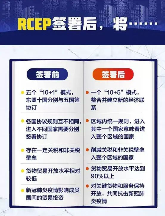 11月2日,全球范圍最廣、體量最大的自由貿(mào)易協(xié)定RCEP成立,該協(xié)議將于明年1月1日起生效。對(duì)協(xié)議準(zhǔn)備情況,商務(wù)部國(guó)際經(jīng)貿(mào)關(guān)系司司長(zhǎng)余本林表示:中國(guó)已準(zhǔn)備就緒。那么生效后,將會(huì)有什么利好?企業(yè)家該如何抓住機(jī)遇呢?