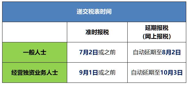 經(jīng)營獨(dú)資業(yè)務(wù)人士可自動延至10月3日。