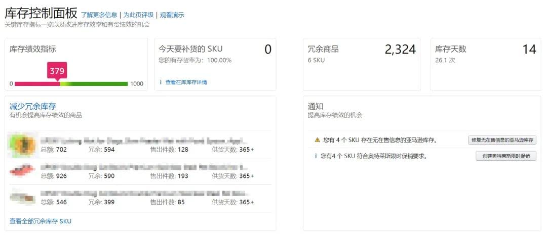 同時,庫存績效頁面還提供了與每個因素相關(guān)的其他指標(biāo),以及提高庫存績效的建議,您可以查看相關(guān)的內(nèi)容以獲取幫助。