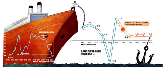 全球商品和服務(wù)貿(mào)易增速自2008年金融危機以來,尤其是2011年開始,長期處于下降趨勢。