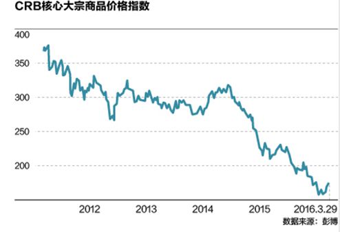 從CRB大宗商品價格指數(shù)來看,自2011年開始大宗商品價格就處于長期下行趨勢中。CRB指數(shù),是由美國商品調(diào)查局(CommodityResearchBureau)依據(jù)世界市場上22種基本的經(jīng)濟敏感商品價格編制的一種期貨價格指數(shù)。