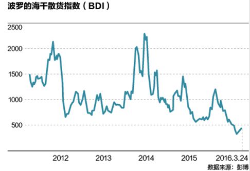 受國際貿(mào)易尤其大宗商品價格下滑的拖累,全球航運業(yè)也長期踟躕不前。波羅的海干散貨指數(shù)盡管較大宗商品波動更大,但下降趨勢同樣明顯。