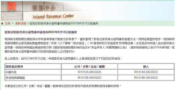在國際間加強稅務合作和不斷變化的營商環(huán)境的背景下,香港特別行政區(qū)稅務局(以下簡稱“稅務局”)重新審視了發(fā)放居民身分證明書的處理方法,并宣布自2023年6月12日起,稅務局將根據(jù)相關的全面性避免雙重課稅協(xié)定/安排(以下簡稱“稅收協(xié)定”)中“香港特別行政區(qū)居民”(以下簡稱“香港居民”)的明確定義,決定是否可以向申請人出具香港居民身分證明書。
