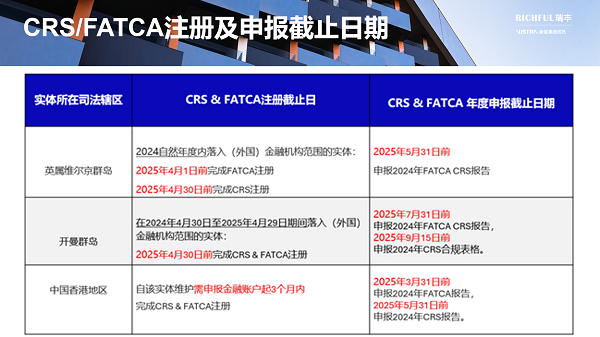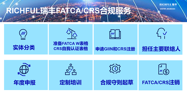 如果您仍然不確定實(shí)體是否落入CRS/FATCA范圍,或者需要我們協(xié)助注冊/申報(bào)等合規(guī)事宜,請盡快聯(lián)系為您提供專屬服務(wù)的RICHFUL瑞豐客戶經(jīng)理,以尋求支持,我們將竭誠為您服務(wù)。