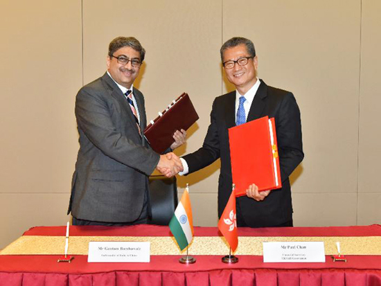 3月19日,香港財政司司長陳茂波代表香港特別行政區(qū)政府在香港與印度駐華大使Gautam Bambawale簽署全面性避免雙重課稅協(xié)定(全面性協(xié)定),標志著特區(qū)政府在擴闊香港稅收協(xié)定網(wǎng)絡(luò)方面繼續(xù)取得成果。