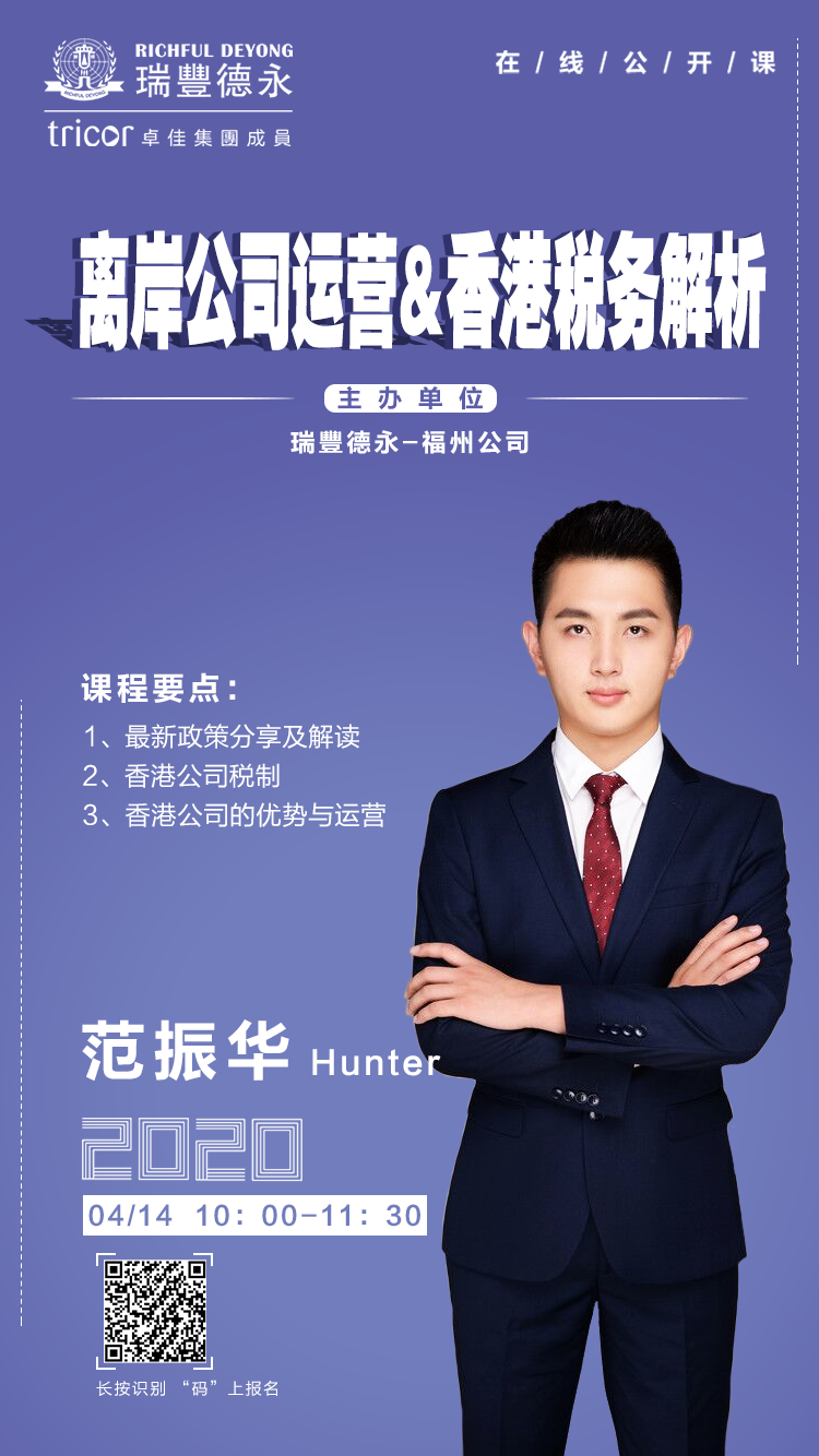 瑞豐德永將在線為您解讀香港最新政策,分析香港公司的優(yōu)勢及當下香港公司運營的難點和重點,分享香港公司稅制及報稅以迎接2020年報稅季,為企業(yè)發(fā)展保駕護航。