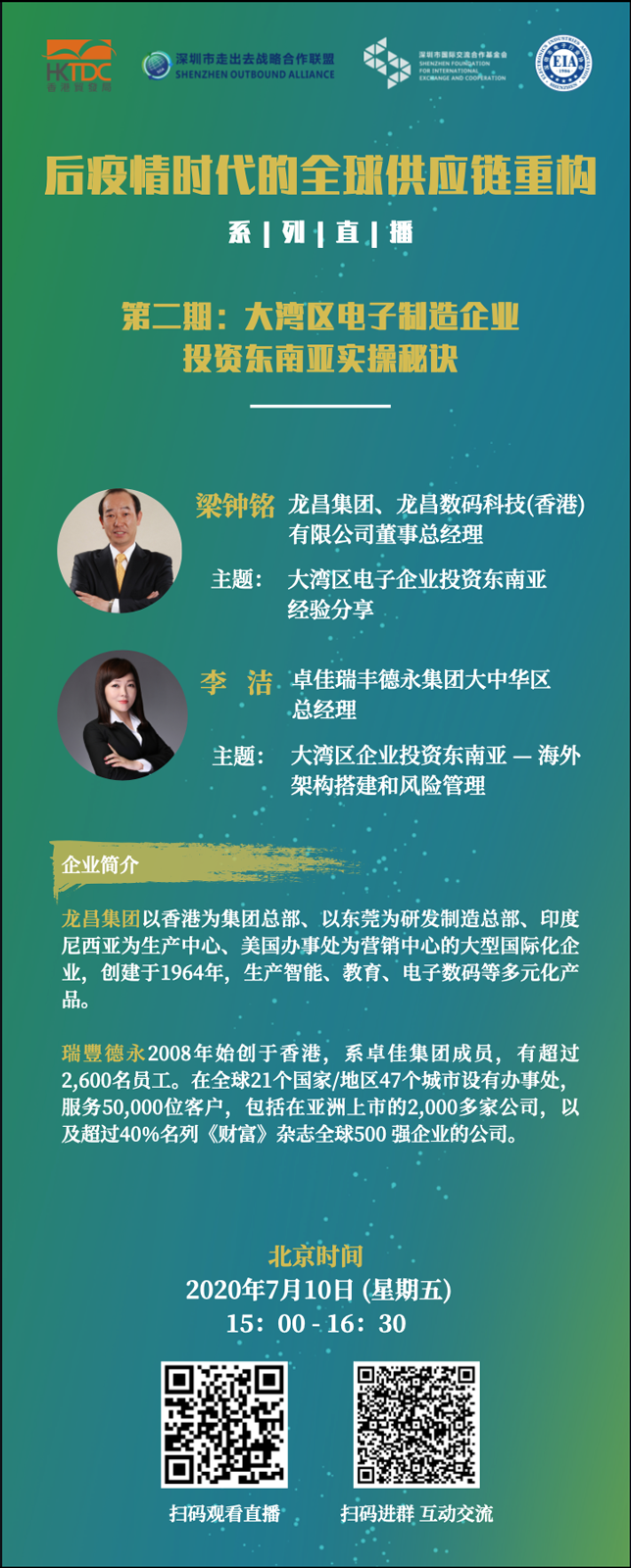 5月21日,『“后疫情時(shí)代的全球供應(yīng)鏈重構(gòu)”系列直播活動(dòng)第一期:大灣區(qū)與東南亞』首期直播活動(dòng)順利舉行,活動(dòng)反響熱烈。