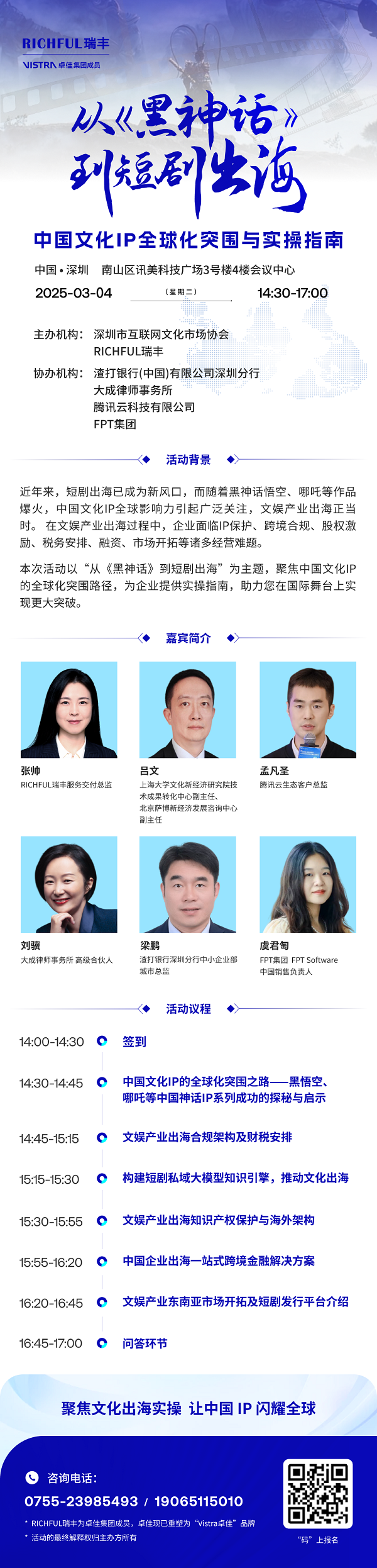 活動邀約 | 從《黑神話》到短劇出海:中國文化IP的全球化突圍與實(shí)操指南…