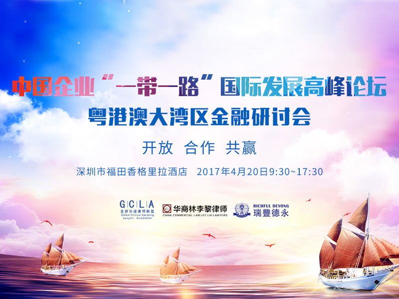 4月20日,由深圳市前海香港商會(huì)、全球華語律師聯(lián)盟、華商林李黎(前海)聯(lián)營律師事務(wù)所及瑞豐德永集團(tuán)聯(lián)合主辦的中國企業(yè)海外發(fā)展配套服務(wù)高峰論壇暨 “一帶一路”國際金融研討會(huì)將在深圳舉行。